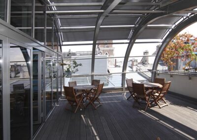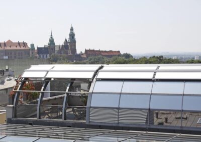 System Veranda przeznaczony jest do osłaniania poziomych i pochyłych przeszklonych połaci, takich jak szklane dachy, halle, ogrody zimowe czy oranżerie.