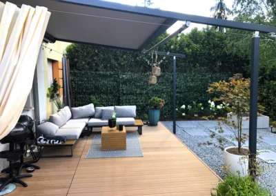 - Osłona tarasu i wnętrza budynku redukuje nagrzewanie się pomieszczeń.