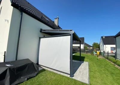 - Osłona tarasu i wnętrza budynku redukuje nagrzewanie się pomieszczeń.