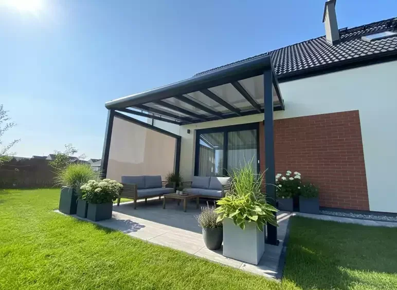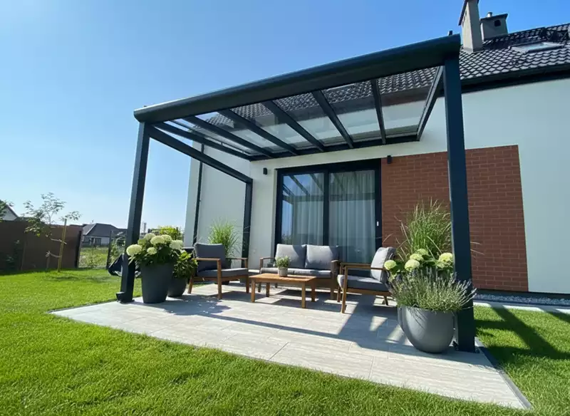Zalety zadaszenia aluminiowego z dachem szklanym lub z poliwęglanu