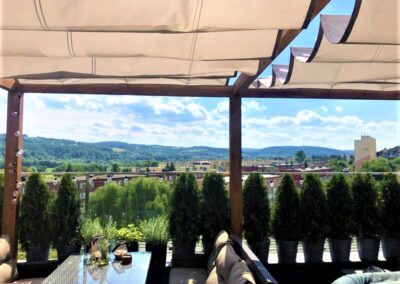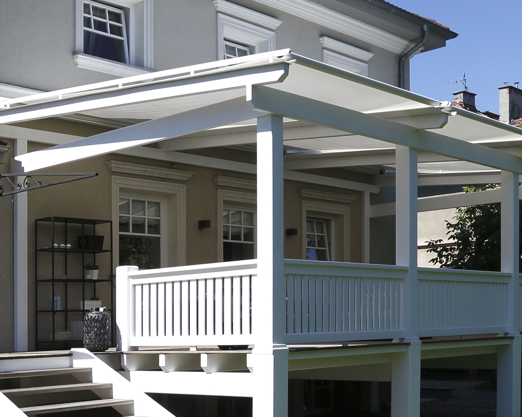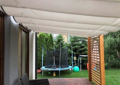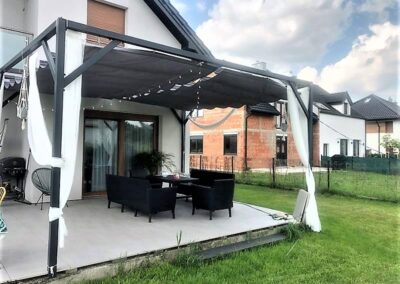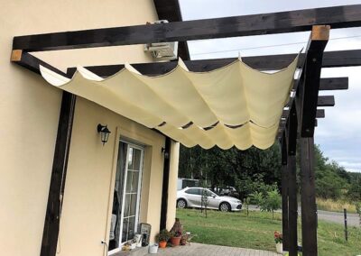 Jest świetnym i niedrogim rozwiązaniem które zapewni nam osłonę przed słońcem i opadami deszczu. Jednocześnie jest mobilne i przy pochmurnych dniach możemy takie zadaszenie zwinąć dopuszczając więcej światła do pomieszczeń.