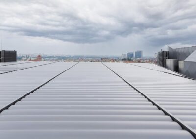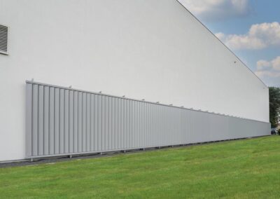 Osłona Sunbreaker polecana jest do dużych przeszkleń. System składa się z wielkogabarytowych piór aluminiowych, lamele oraz uchwyty wykonane są z ekstrudowanego aluminium, co gwarantuje ich wysoką trwałość i odporność na czynniki zewnętrzne.